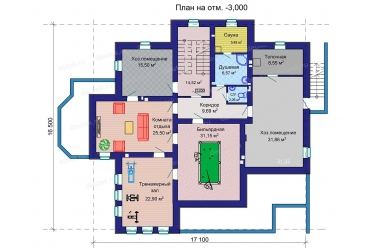 Габариты дома: 17.10 x 16.50 м