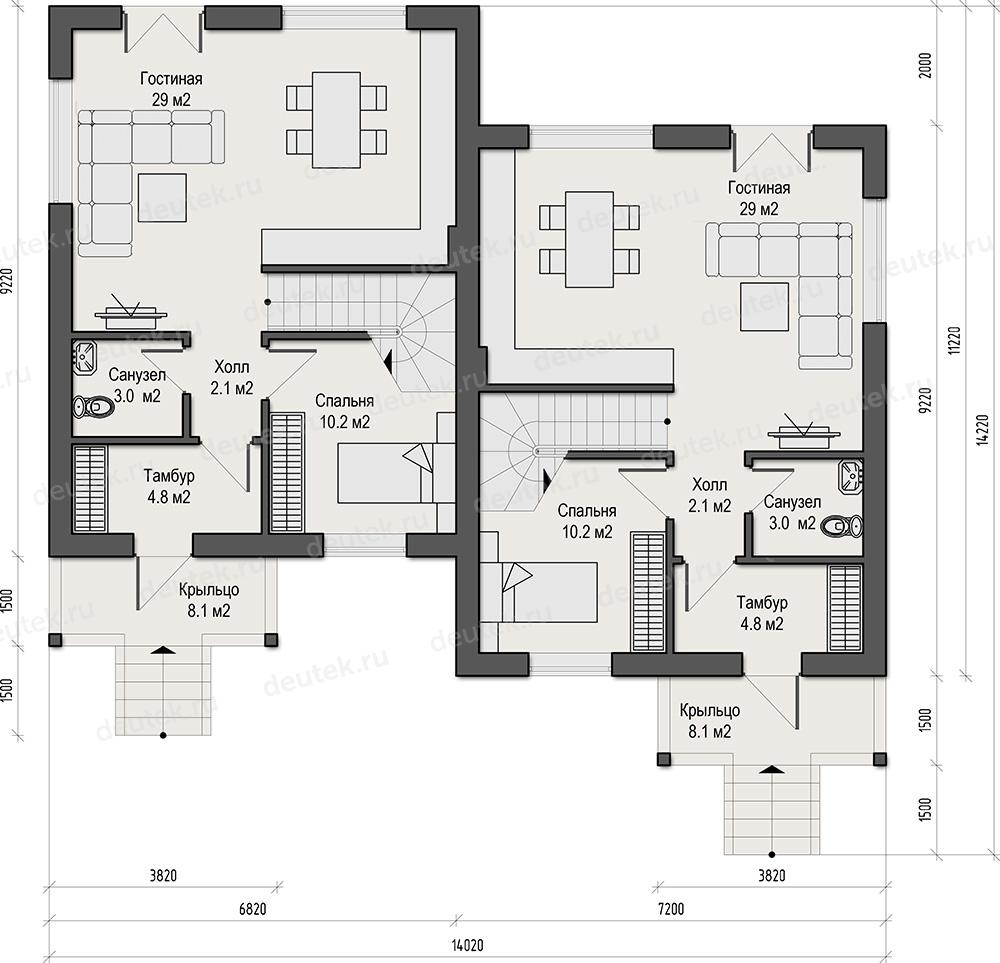 Большая часть наших проектов содержит монолитную плиту, которая является универсальным фундаментом и подходит под большинство типов грунта. Буронабивные сваи с монолитной лентой ростверка являются самым доступным решением, но чтобы реализовать это решение необходимо предоставить отчет геологии, который вы можете заказать у нас или в любой другой компании. Данный тип фундамента иногда не может быть применен к слишком большим и тяжелым домам. Экономия, по сравнению с плитой, достигает до 40%.