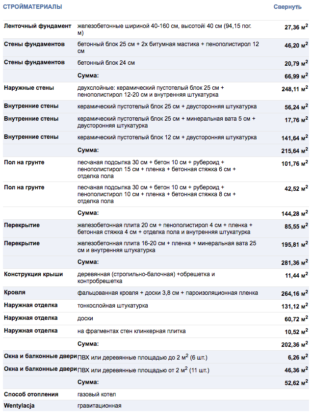 • Материал стен, кровли и фасада