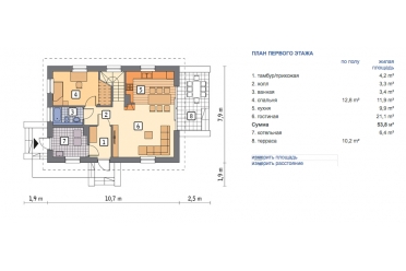 | Габариты дома: | 10.70 x 7.90 м |