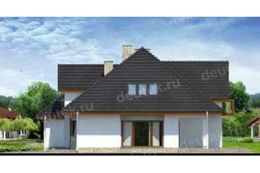 Проект двухэтажного дома из керамоблоков с мансардой и двухместным гаражом DTV100129