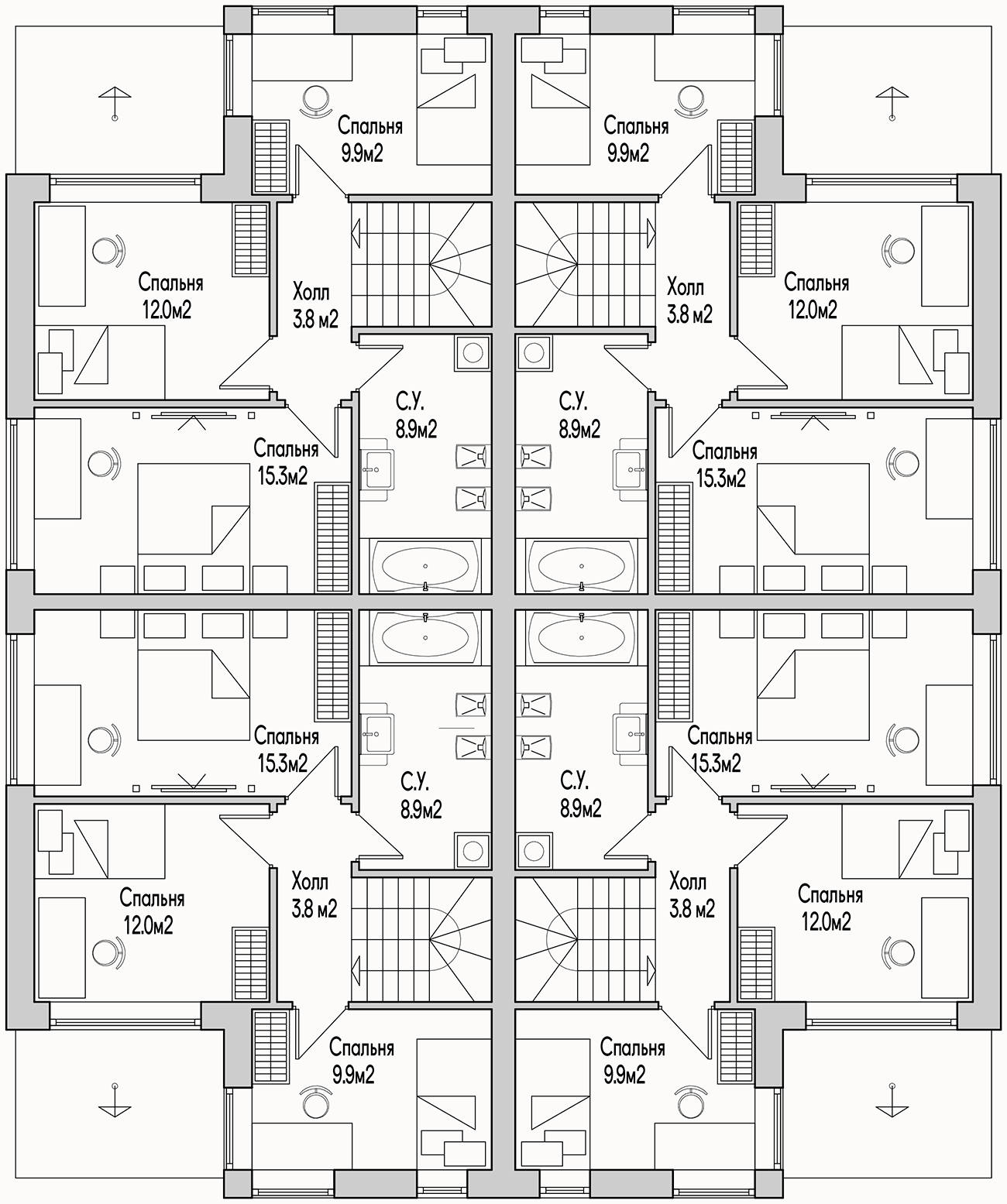 Большая часть наших проектов содержит монолитную плиту, которая является универсальным фундаментом и подходит под большинство типов грунта. Буронабивные сваи с монолитной лентой ростверка являются самым доступным решением, но чтобы реализовать это решение необходимо предоставить отчет геологии, который вы можете заказать у нас или в любой другой компании. Данный тип фундамента иногда не может быть применен к слишком большим и тяжелым домам. Экономия, по сравнению с плитой, достигает до 40%.