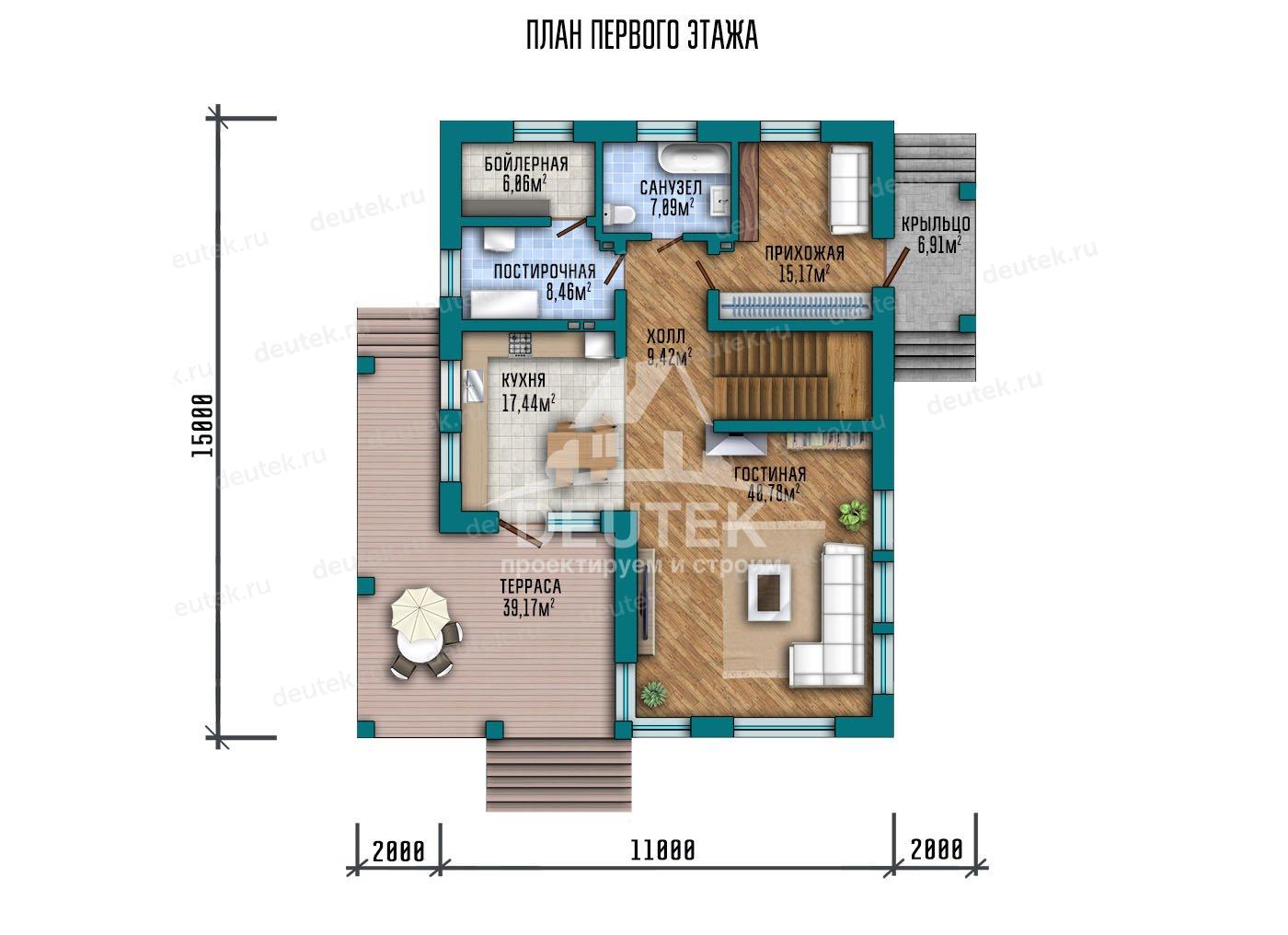 Габариты дома: 15.00 x 15.00 м