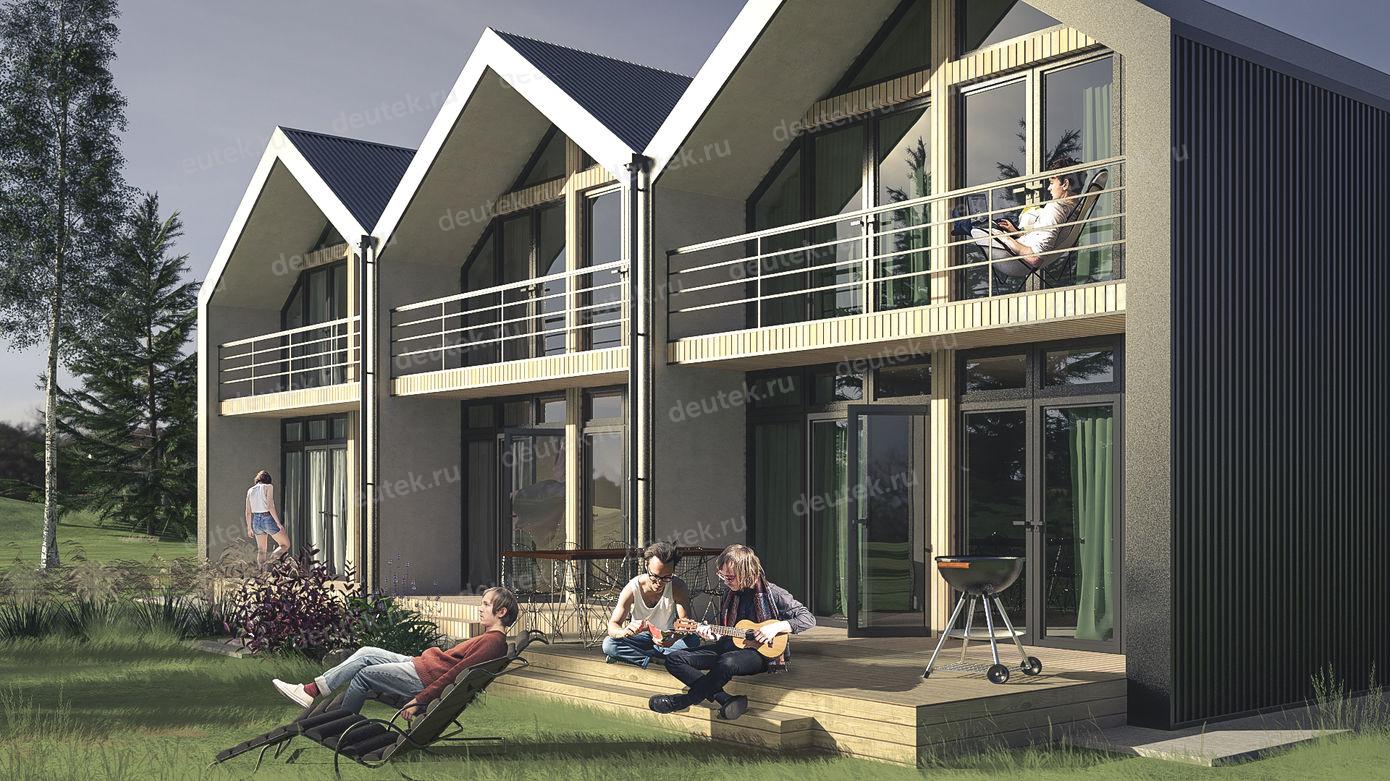 Проект двухэтажного таунхауса из каркаса с мансардой L-1