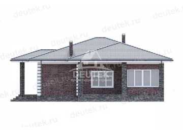 Проект квадратного одноэтажного дома из газобетона с верандой и кабинетом - LK-182