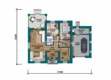 Проект жилого одноэтажного дома с одноместным гаражом - LK-264