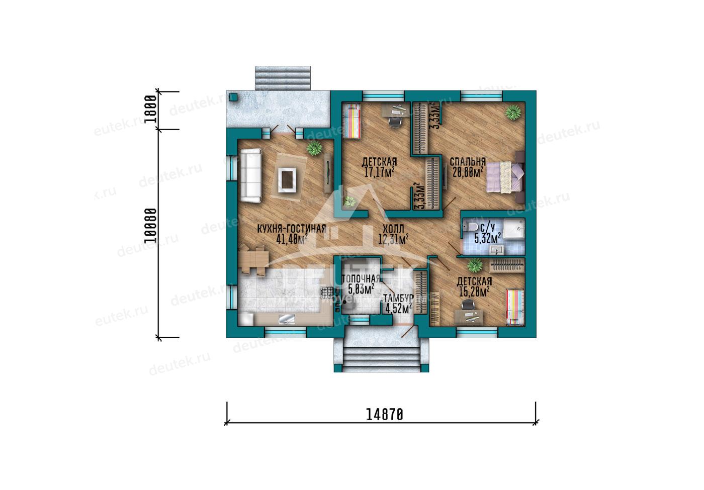 Габариты дома: 11.88 x 14.87 м
