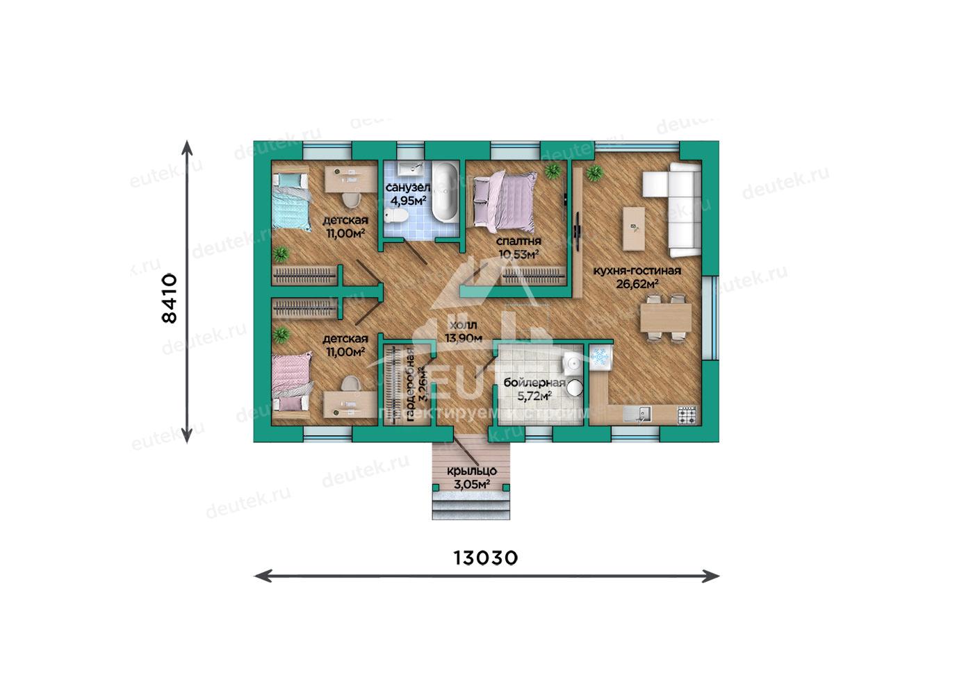 Проект узкого одноэтажного дома из газобетонного блока - LK-345