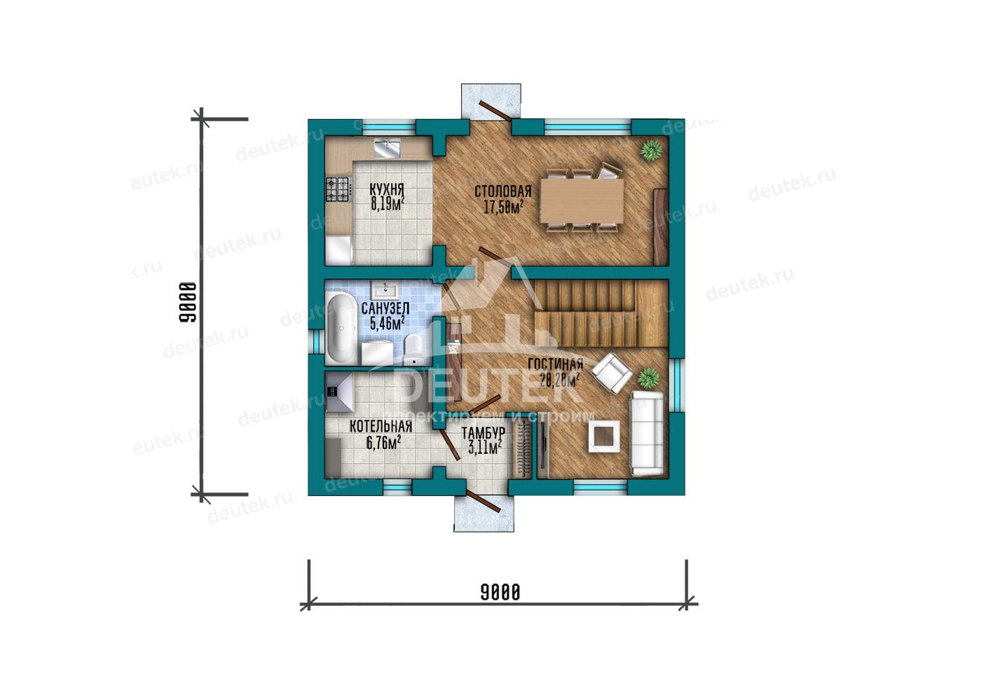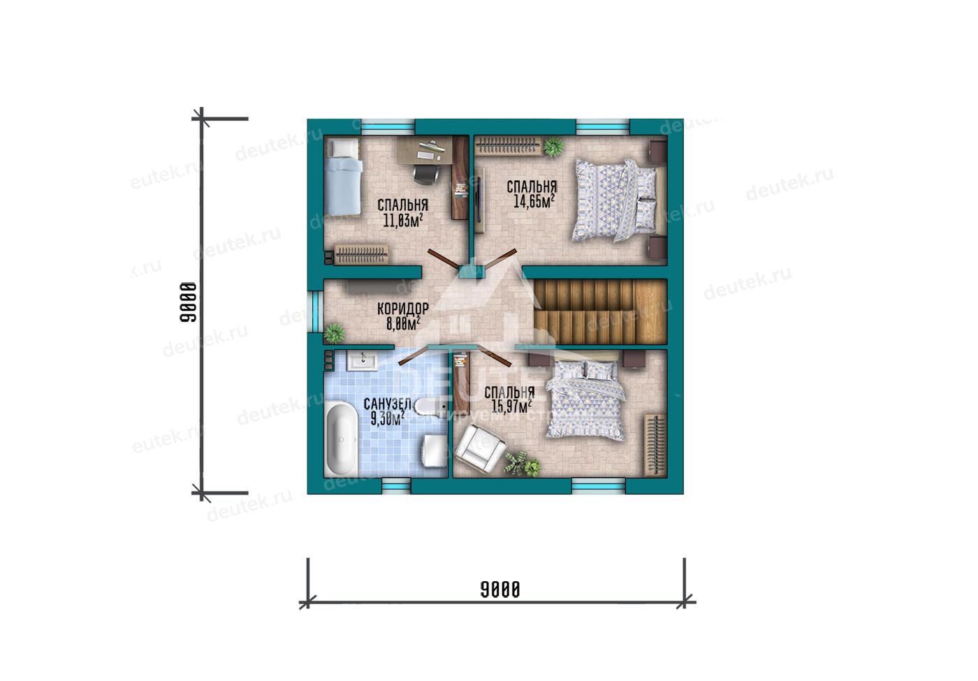 Проект квадратного двухэтажного дома с тремя спальнями - LK-358