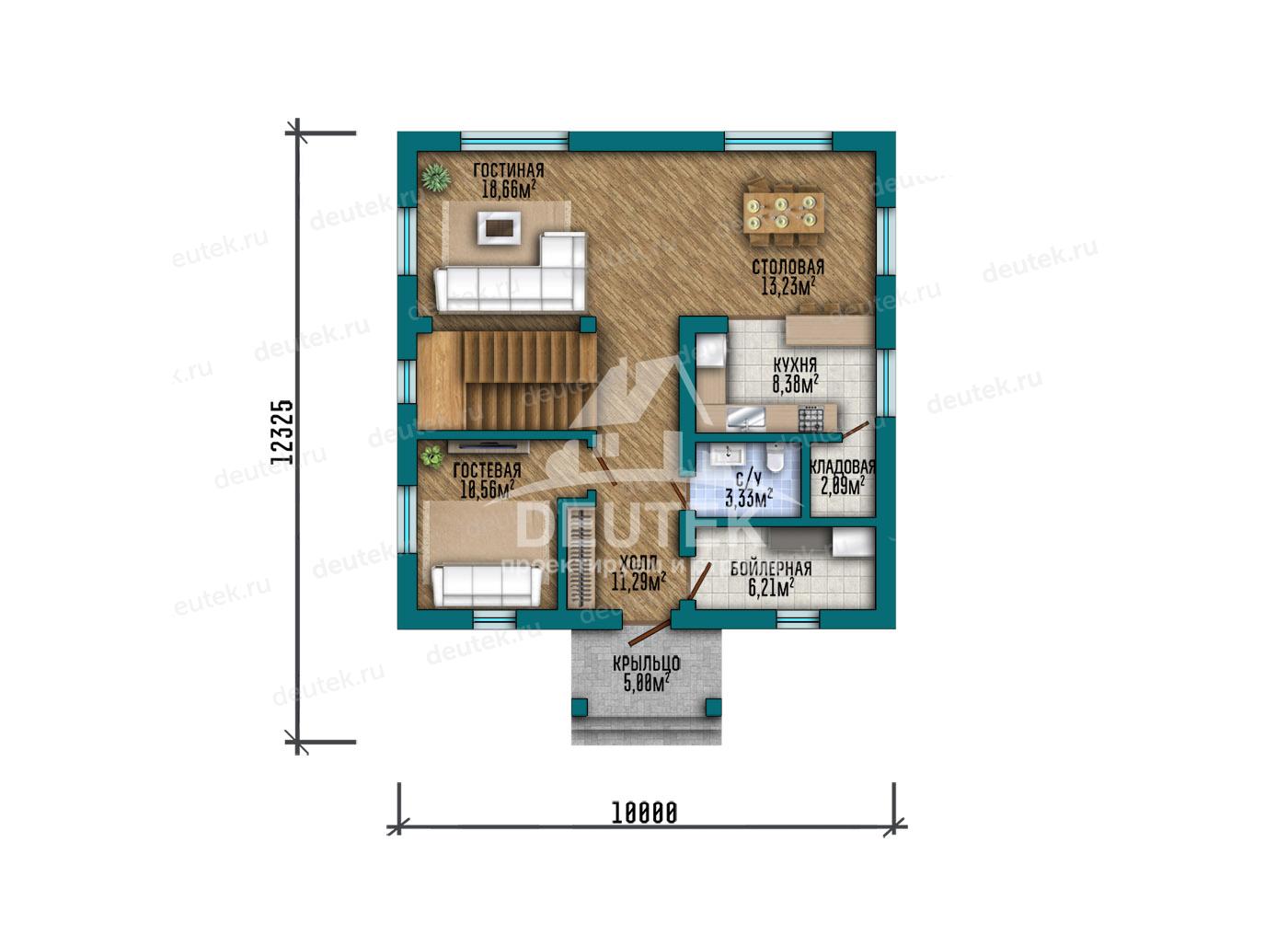 | Габариты дома: | 10.00 x 12.32 м |