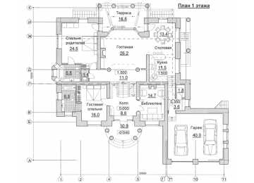 Проект трёхэтажного дома из кирпича в стиле барокко с цокольным этажом и двухместным гаражом, с площадью до 500 кв м PA-23