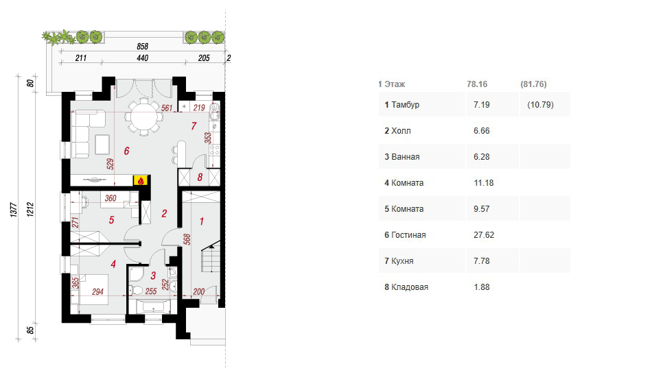 | Материал стен: | пустотелый керамический блок (или газобетон) 25 см |